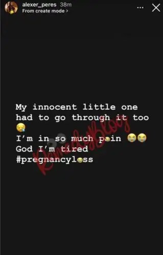 The heartbreaking news was revealed by Alexer on her Instagram page. She acknowledged that she was in excruciating pain and said that her helpless child had also had to endure it.